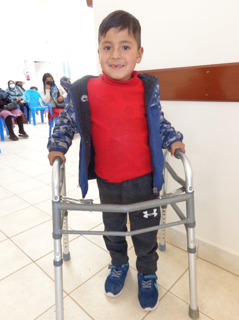 Throughout this ordeal, Joel’s mother was in close communication with the Mission of Hope clinic, since Mission of Hope was paying for all of Joel’s expenses in the hospital. Knowing the dire economic situation of the family, the Mission of Hope staff pooled their personal resources and bought groceries, which they took to Joel’s family. When Joel was discharged from the hospital, he was unable to use his left leg and was told that his recovery would be gradual. Joel and his parents came to the Mission of Hope clinic a few days later to thank everyone. Seeing how difficult it was for Joel to walk, he was given a “walker” to use.