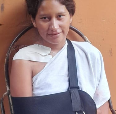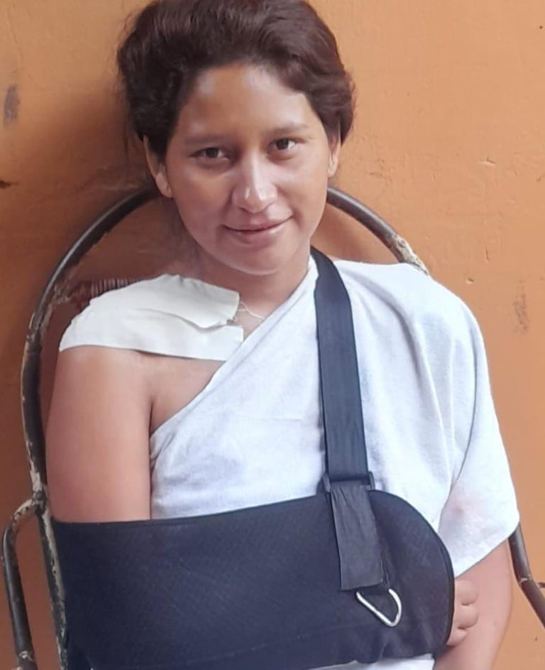 One very hot and stormy day, she was washing clothes outside the house under a mango tree. Just as she was about to finish washing the clothes a strong wind broke off a limb of the mango tree, and it fell on her right shoulder. She immediately felt a sharp pain, but she was home alone with the children and had to wait for her husband to get home to take her to a nearby medical clinic. They arrived at the clinic only to find out that the doctors there were on strike. From there, they went to a nearby public hospital where she was given pain medicine and x-rays were taken. The x-rays revealed a fractured collar bone. The doctor there told her she needed a surgery that would cost between $2500 and $3500 (US dollars), depending on the cost of the surgical plates and pins that were needed. Maritza and her husband told the doctor that they had no money, no savings, and no way to get that amount of money. The doctor then suggested that they go to the local “witch doctor” to get treatment. Maritza was in so much pain that they went to see the “medicine man.” He put a paste made from the sap of a
